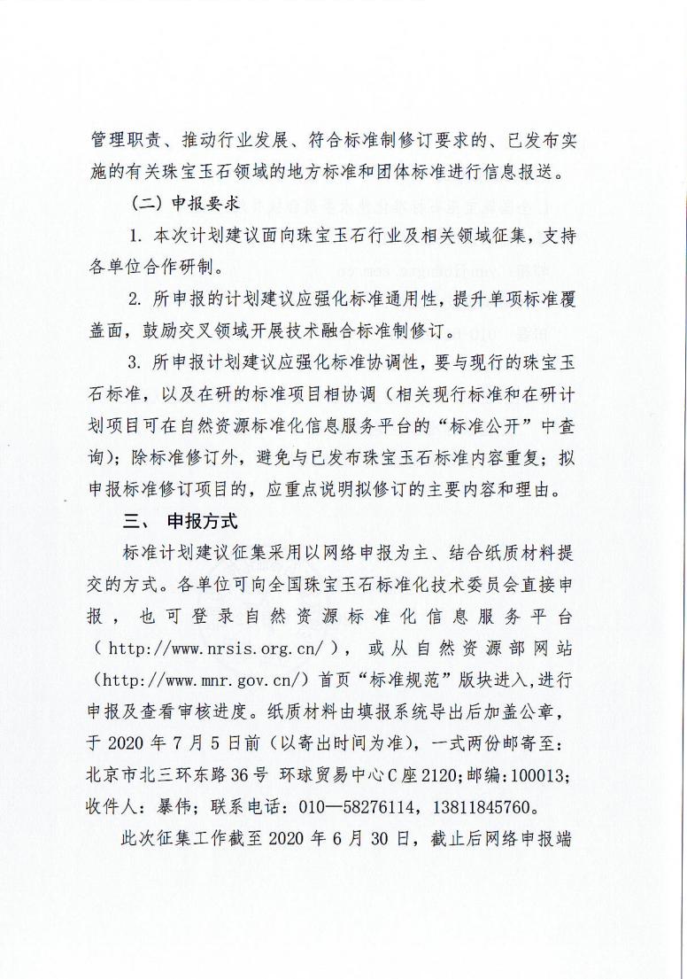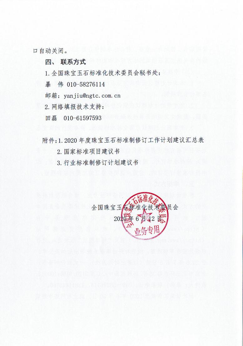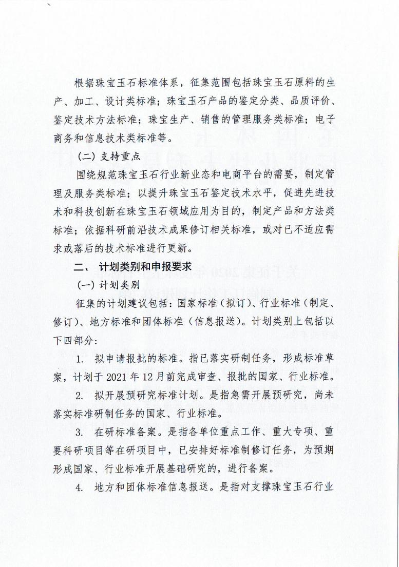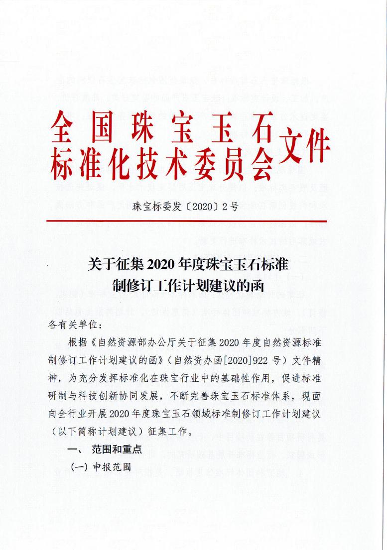 關于征集2020年度珠寶玉石標準制修訂工作計劃建議的函