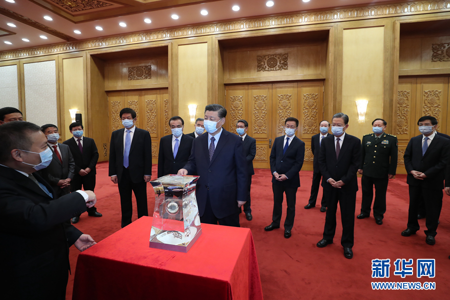 習近平在會見探月工程嫦娥五號任務參研參試人員代表并參觀月球樣品和探月工程成果展覽時強調