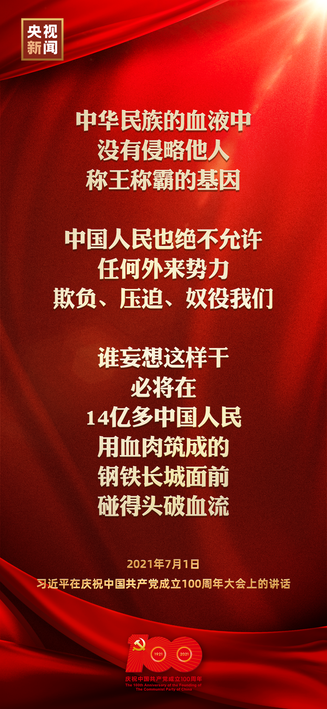 今天,慶祝中國共產(chǎn)黨成立100周年大會在北京天安門廣場隆重舉行,中共中央總書記、國家主席、中央軍委主席習(xí)近平發(fā)表重要講話。