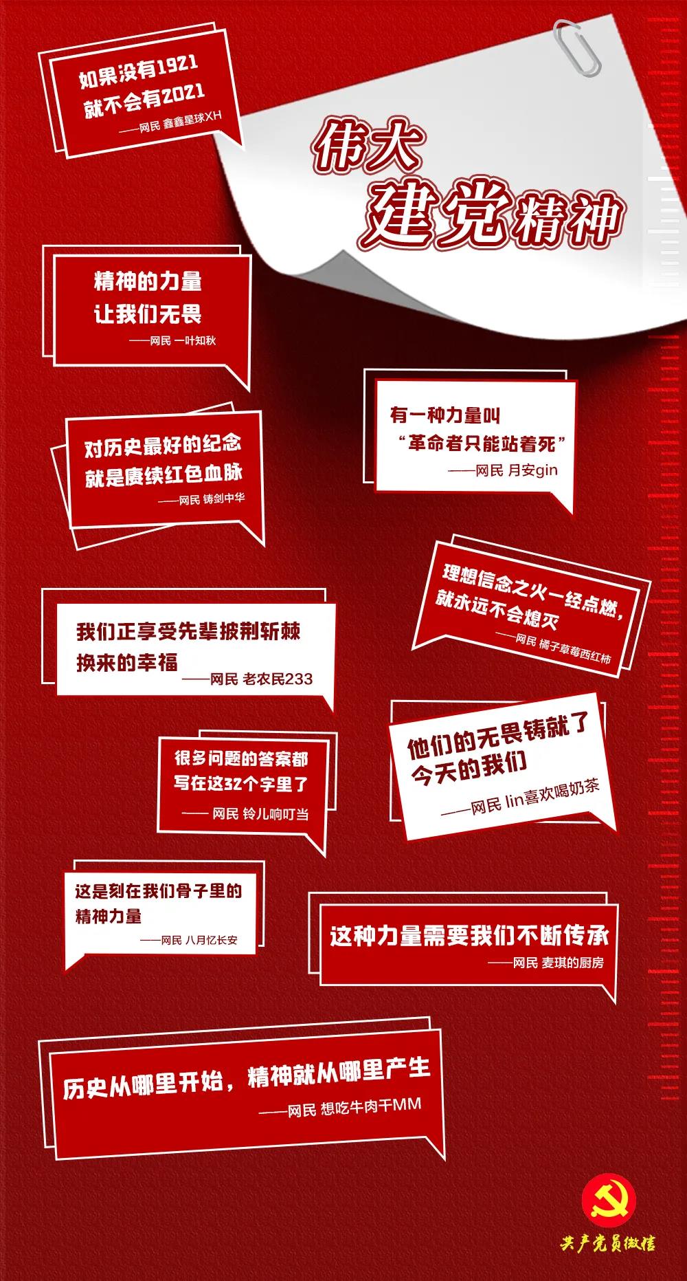 人無精神不立,國無精神不強(qiáng)。一百年來,一代代中國共產(chǎn)黨人,頑強(qiáng)拼搏、不懈奮斗,形成了一系列偉大精神,構(gòu)筑起了中國共產(chǎn)黨人的精神譜系。這些偉大精神猶如熠熠火焰,照亮了跋山涉水的征程。在抗擊疫魔的戰(zhàn)場(chǎng),在星辰大海的征途,在高原邊關(guān)的戰(zhàn)位,在鄉(xiāng)村振興的一線……精神的火焰永遠(yuǎn)向上,精神的火炬代代相傳。這些偉大精神,讓廣大網(wǎng)民們深受感染、深受感動(dòng)、深受鼓舞,紛紛寫下感想和思考。讓我們一起看看他們的精彩留言,近距離感受百年大黨風(fēng)華正茂的“精神密碼”。
