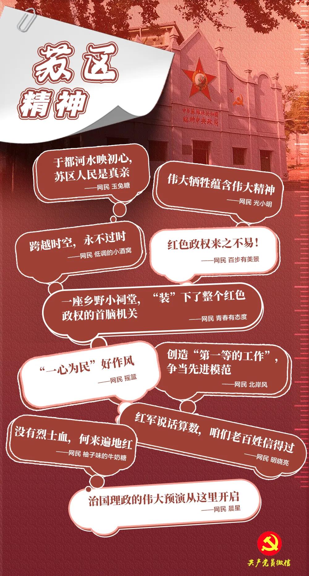 光陰流轉(zhuǎn),斗轉(zhuǎn)星移,“人民至上”的初心始終不渝。當(dāng)年蘇區(qū)如火如荼的革命斗爭(zhēng)已成歷史記憶,但偉大的蘇區(qū)精神仍然閃爍著新的時(shí)代光芒。社交平臺(tái)上的網(wǎng)民們關(guān)于蘇區(qū)精神的留言,再次讓我們感受到以堅(jiān)定信念、求真務(wù)實(shí)、一心為民、清正廉潔、艱苦奮斗、爭(zhēng)創(chuàng)一流、無私奉獻(xiàn)等為主要內(nèi)涵的蘇區(qū)精神的力量。這一精神是無數(shù)革命先輩用鮮血和生命鑄就的,是我們?nèi)谌胙}的信仰,有著生生不息的力量。