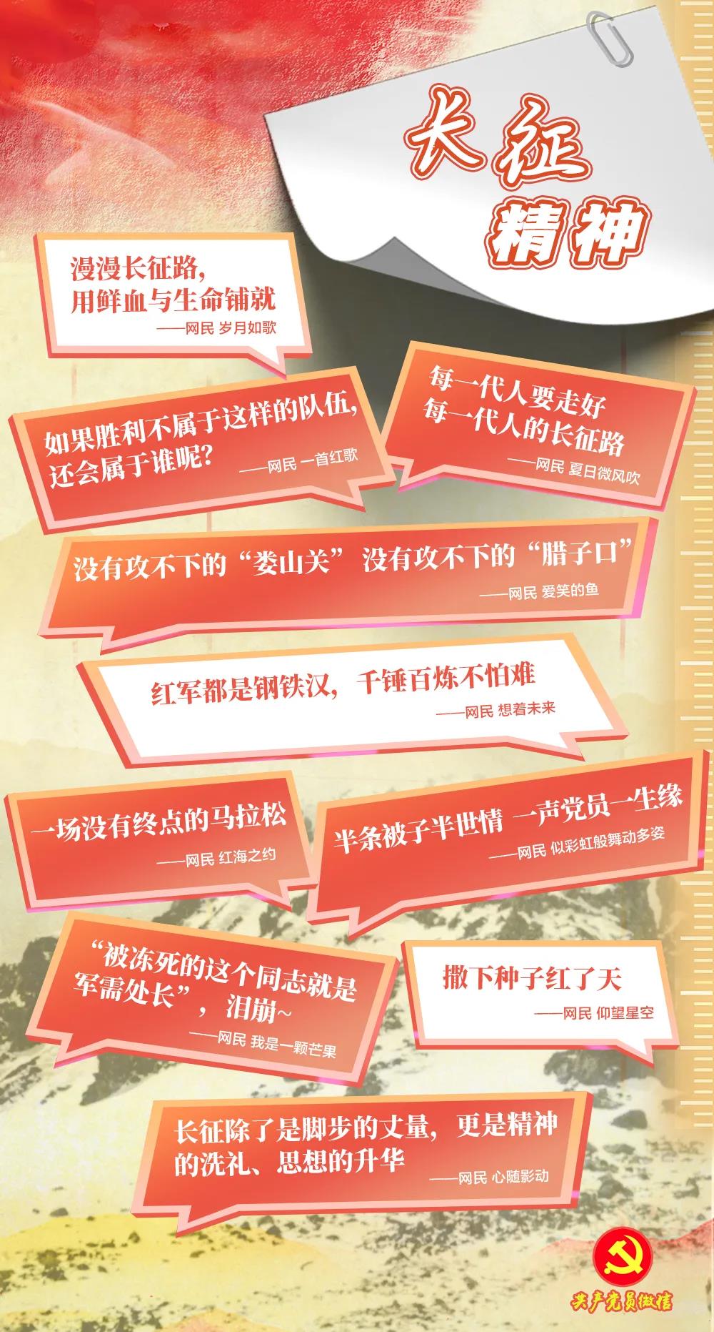 薪火相傳,生生不息。今天,當(dāng)年長(zhǎng)征走過的雪山草地建了高速公路,天塹架起橋梁,山巒鋪設(shè)鐵軌。社交平臺(tái)上關(guān)于長(zhǎng)征精神的討論熱度很高。這一精神猶如一顆種子,深植大地與山川,融入中華民族的血脈和靈魂,成為我們戰(zhàn)勝一切困難的精神動(dòng)力。它的思想精髓永放光芒,激勵(lì)我們不斷向前,再向前!