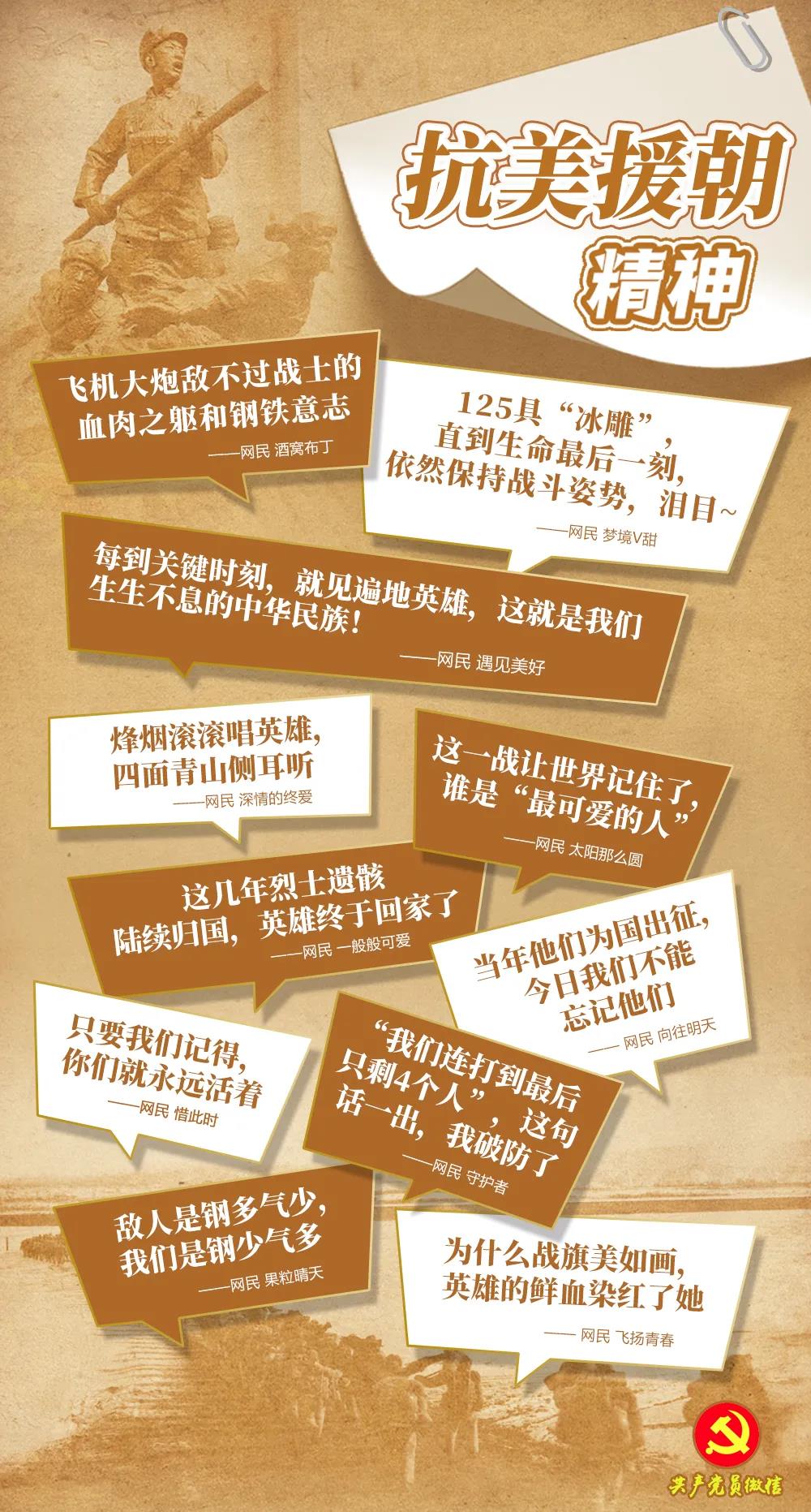 “為什么大地春常在,英雄的生命開鮮花!”如今,人們時(shí)時(shí)唱響這首歌曲,禮贊英雄、懷念英雄。多少年了,我們從來沒有忘記那場(chǎng)保家衛(wèi)國的戰(zhàn)爭(zhēng),沒有忘記和平是用鮮血和生命換來的,沒有忘記捍衛(wèi)國家尊嚴(yán)的忠魂英烈。正如網(wǎng)民在社交平臺(tái)上的留言,“每到關(guān)鍵時(shí)刻,就見遍地英雄,這就是我們生生不息的中華民族!”“只要我們記得,你們就永遠(yuǎn)活著”。這是對(duì)勝利最好的紀(jì)念,也是對(duì)英烈最好的告慰。