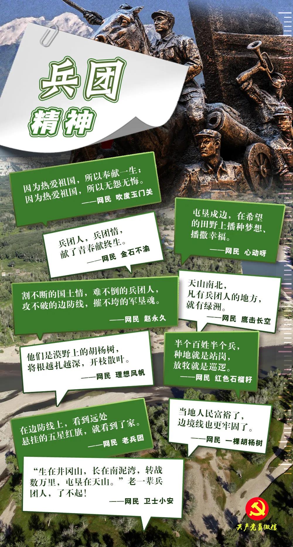 光陰荏苒,歲月如梭,兵團(tuán)精神猶如大漠中的胡楊屹立不倒。半個(gè)多世紀(jì)以來,在兵團(tuán)精神的激勵(lì)下,一批又一批有志青年從祖國四面八方陸續(xù)來到新疆,克服生存、生產(chǎn)困難,扎根邊疆、奉獻(xiàn)邊疆,在天山南北創(chuàng)造出人類發(fā)展奇跡,為推動(dòng)新疆發(fā)展、增進(jìn)民族團(tuán)結(jié)、維護(hù)社會(huì)穩(wěn)定、鞏固國家邊防作出了不可磨滅的歷史貢獻(xiàn)。社交平臺(tái)上,網(wǎng)民們也一次次被兵團(tuán)人的熱血情懷感動(dòng)、被他們的無私無畏震撼。新征程上,讓我們從兵團(tuán)精神中汲取力量,到祖國最需要的地方去,扎根基層,奉獻(xiàn)青春,正如網(wǎng)民所說:“因?yàn)闊釔圩鎳?,所以奉獻(xiàn)一生;因?yàn)闊釔圩鎳?,所以無怨無悔?!?/p>