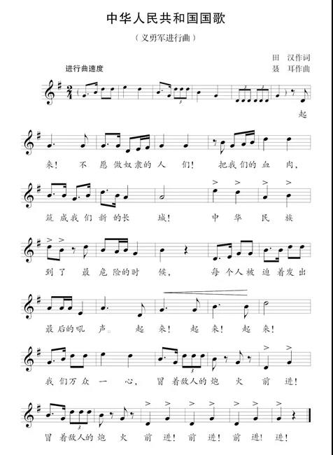 2004年3月14日,第十屆全國人大第二次會議通過了《中華人民共和國憲法修正案》,修正案第三十一條規(guī)定,憲法第一百三十六條增加一款,作為第二款:“中華人民共和國國歌是《義勇軍進行曲》。”2017年9月1日,《中華人民共和國國歌法》經(jīng)十二屆全國人大常委會第二十九次會議表決通過,于2017年10月1日起施行。