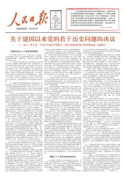 1981年6月27日,黨的十一屆六中全會一致通過了《關(guān)于建國以來黨的若干歷史問題的決議》(以下簡稱《決議》)。