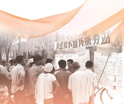 1981年9月,河北臨西縣實行包產(chǎn)到戶后,農(nóng)技推廣站在集上銷售種子、農(nóng)藥,許多農(nóng)民前來咨詢農(nóng)業(yè)技術(shù)問題。蔣鐸 攝(影像中國)