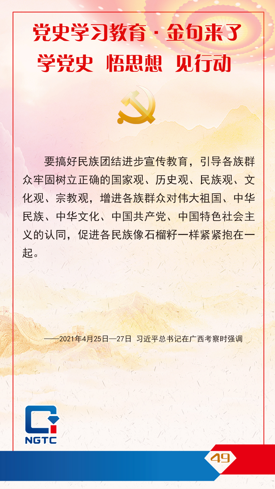 黨史學習教育·金句來了丨引導(dǎo)各族群眾牢固樹立正確的國家觀、歷史觀、民族觀、文化觀、宗教觀