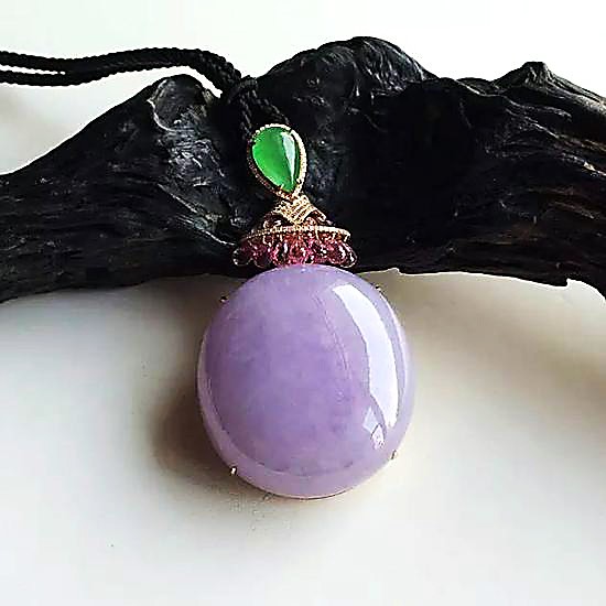鑲玫瑰金鉆石糯冰種紫羅蘭胸墜,  細(xì)膩的質(zhì)地中包裹著濃艷高雅的紫色,比起說(shuō)像是一個(gè)養(yǎng)在深閨的少女,倒不如說(shuō)是舉止得體拿得出手的名門小姐,散發(fā)著獨(dú)特優(yōu)雅的魅力。紫若煙霞、貴氣襲人,成就了其神秘而華麗的氣質(zhì)。