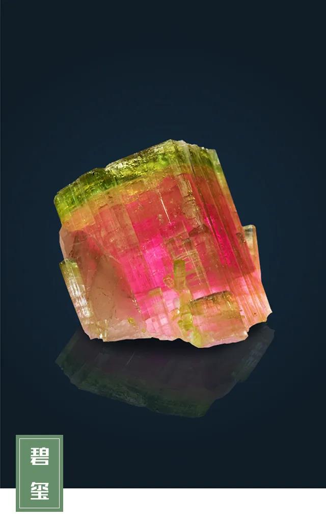 碧璽是電氣石的工藝品名,也是電氣石“家族”里達(dá)到珠寶級(jí)的一個(gè)種類。作為一種硼硅酸鹽結(jié)晶體,碧璽含有鋁、鐵、鎂、鈉、鋰、鉀等多種化學(xué)元素,成分復(fù)雜,因此呈現(xiàn)出色彩斑斕、如彩虹般絢爛美麗的顏色。