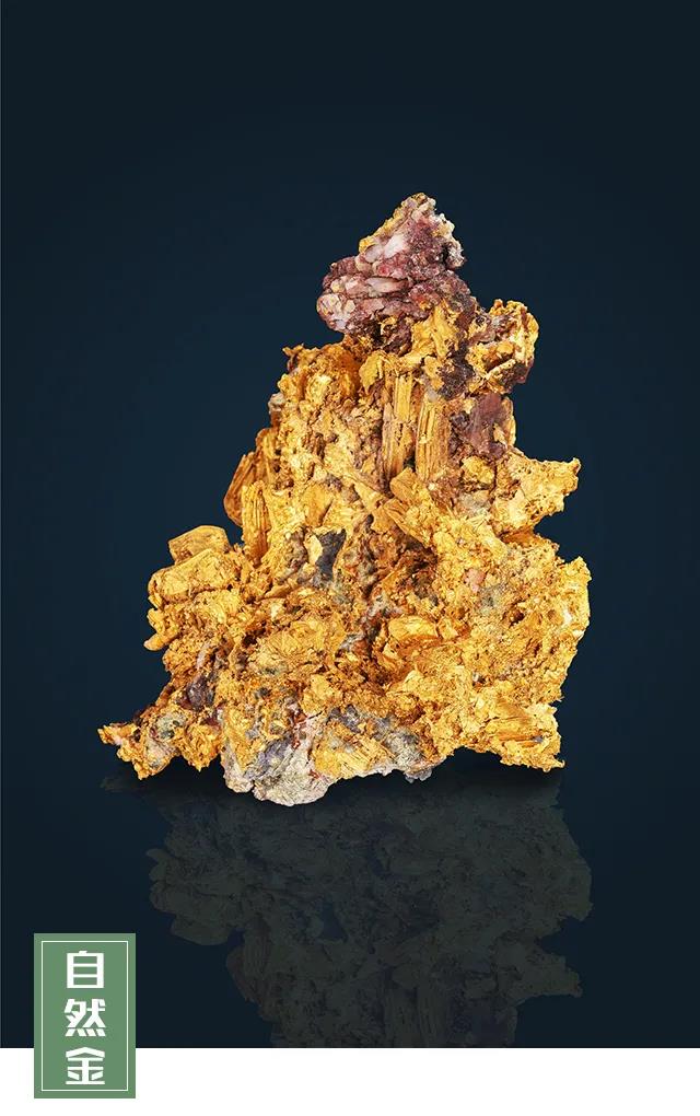 自然金是自然產(chǎn)生的金元素礦物。純凈的金呈略帶紅色調(diào)的黃色,在自然界中一般以散粒狀、不規(guī)則樹枝狀、片狀或塊狀集合體形式出現(xiàn),常伴生銀或微量的銅。