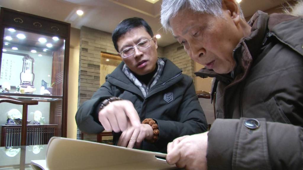 顧永駿,中國工藝美術(shù)大師,國家級(jí)非物質(zhì)文化遺產(chǎn)揚(yáng)州玉雕代表性傳承人,被譽(yù)為“中國山子雕第一人”。年近八旬的顧老已經(jīng)很少再親自動(dòng)手,兒子顧銘繼承了他的衣缽。在顧老看來,兒子構(gòu)思方法比較前衛(wèi)。比如說名叫“最遙遠(yuǎn)的距離”的玉雕作品,是顧銘在2017年創(chuàng)作完成的。背對(duì)背的男孩和女孩,拿著手機(jī),低著頭,雖然靠在一起,卻沒有交流。創(chuàng)作的時(shí)候,顧銘并沒有考慮到它的商業(yè)價(jià)值,只是單純地想反映一種社會(huì)現(xiàn)象。
