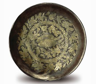 魚、草等紋飾的出現(xiàn)較早,在唐代金銀器上,魚紋是比較常見(jiàn)的紋飾。我國(guó)民間自古即有以魚用作吉祥紋飾的傳統(tǒng),取其諧音“魚”、有“余”,寓意連年有余。古時(shí)常以魚水比喻君臣關(guān)系,寓意君臣魚水相得,又表現(xiàn)了臣下對(duì)君上的忠心耿耿。