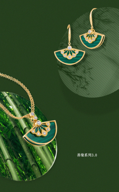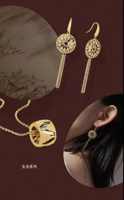 竹系列,以中華文化中的竹節(jié)為設(shè)計(jì)元素,代表著獨(dú)立、自主、平等的新時(shí)代俠女精神;頑石系列,靈感來(lái)源于“女?huà)z補(bǔ)天”中具有靈性且能量巨大的五色石,用黃金打造成一塊塊“頑石”,寓意即使自己生而渺小,卻也努力在平凡世界里閃著光;善緣系列,以扇承善,廣結(jié)善緣,為己而飾,盡善盡美;玄金系列,西方教堂的窗花遇上中式對(duì)稱美學(xué),傳統(tǒng)累珠工藝碰撞新式電鍍黑金,文化與古今的碰撞融合簡(jiǎn)約而不平凡。