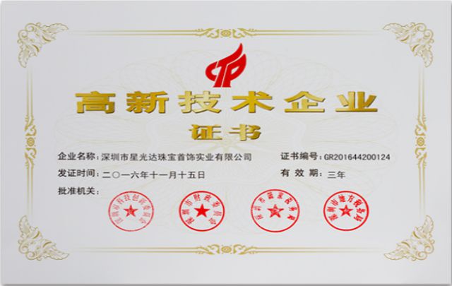 在鍛造自主創(chuàng)新能力的同時(shí),加強(qiáng)對(duì)創(chuàng)新成果的知識(shí)產(chǎn)權(quán)保護(hù),加快創(chuàng)新升級(jí)進(jìn)程。截止目前,星光達(dá)珠寶已擁有445項(xiàng)自主知識(shí)產(chǎn)權(quán),外觀設(shè)計(jì)專利339項(xiàng),實(shí)用新型專利42項(xiàng),發(fā)明專利4項(xiàng),(軟件)著作權(quán)10項(xiàng),作品登記證書50項(xiàng)。