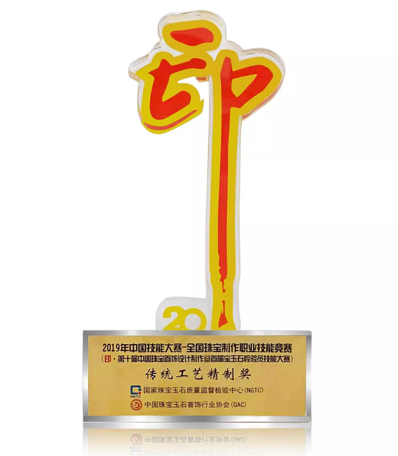 賽菲爾參賽作品《蝶羽芳菲》在2019中國(guó)技能大賽-全國(guó)珠寶制作職業(yè)技能競(jìng)賽(印·第十屆中國(guó)珠寶首飾設(shè)計(jì)制作暨首屆寶玉石檢驗(yàn)員技能大賽)中,榮獲“傳統(tǒng)工藝精制獎(jiǎng)”