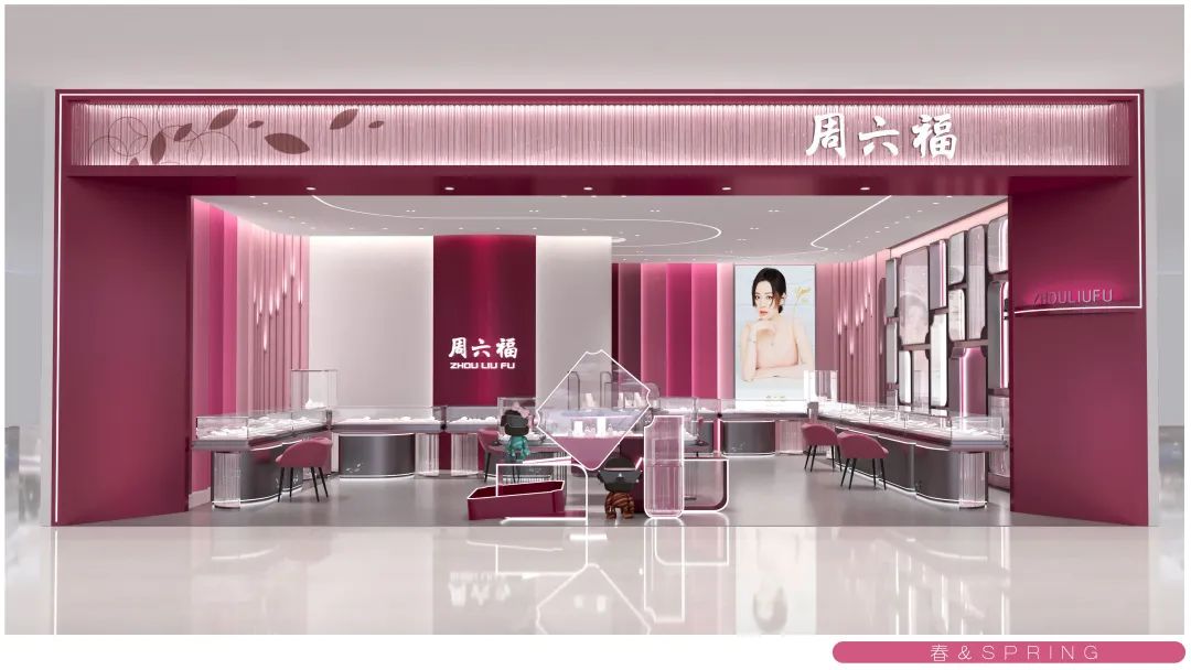 在終端門店形象方面,周六福緊跟時代審美趨勢,不斷在原有造型元素上進行延展與探索,打造出周六福全新五代形象,以“春夏秋冬”四季作為設計理念,提煉出四種不同的主題色調(diào),通過不同色系、光影、元素的巧妙搭配,力求在色調(diào)中為大家構(gòu)建年輕、時尚的空間感受。四種不同的門店形象如四季一般,個性鮮明卻又相互關聯(lián)。周六福打破傳統(tǒng)的單一形象,更好地匹配不同環(huán)境,以更和諧、更獨特的姿態(tài)融入各大商場平臺,為消費者帶來煥然一新的視覺享受與購物體驗。