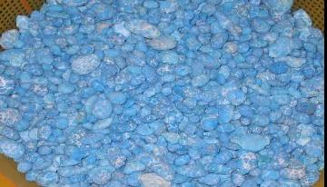 安徽綠松石中除馬鞍山外,還有一個(gè)重要的產(chǎn)區(qū)就在樅陽(yáng)、廬江、無(wú)為三縣交界的銅礦區(qū)內(nèi),銅陵小籽就是產(chǎn)自于此。這一區(qū)域處在管理嚴(yán)格的銅礦開采區(qū)里,現(xiàn)開采的礦口不多,但品質(zhì)極高,儲(chǔ)量豐富。銅陵產(chǎn)的高藍(lán)小籽料(銅陵小籽),雖然顆粒小,但顏色湛藍(lán),硬度極高,是安徽高品質(zhì)綠松石的代表。