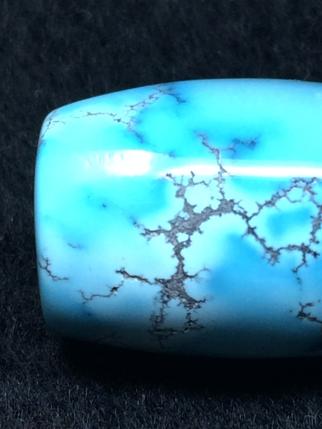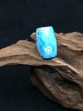 美國藍(lán)月亮綠松石,迷人的淡藍(lán)色令人愛不釋手,外觀極像湖北綠松石,部分具有銀灰色的鐵線,可以與湖北綠松石區(qū)別。
