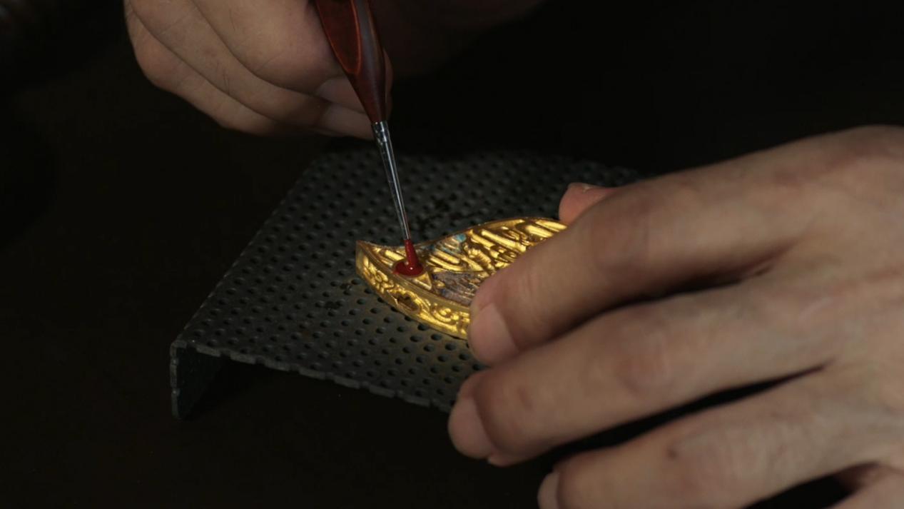 景泰藍工藝又稱為“銅胎掐絲琺瑯”,是一種瓷銅結合的獨特工藝品。它以紫銅做胎,工藝師在銅胎上作畫,再用銅絲按照圖案粘于銅胎上,接著用色彩不同的琺瑯釉料填在銅絲圍成的格間,最后經過高溫燒制、磨光而成。