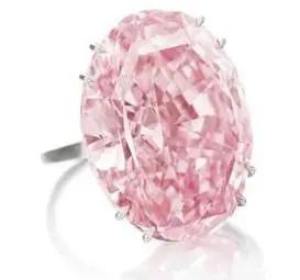 “Pink Star”,重59.6克拉,艷彩粉色,凈度IF,2017年4月在蘇富比日內(nèi)瓦拍賣會(huì)上,周大福以7100萬(wàn)美元的價(jià)格拍下,并更名為“周大福粉鉆“ (CTF Pink Star),刷新了全球鉆石及寶石的拍賣紀(jì)錄,成為目前全球最昂貴的珠寶