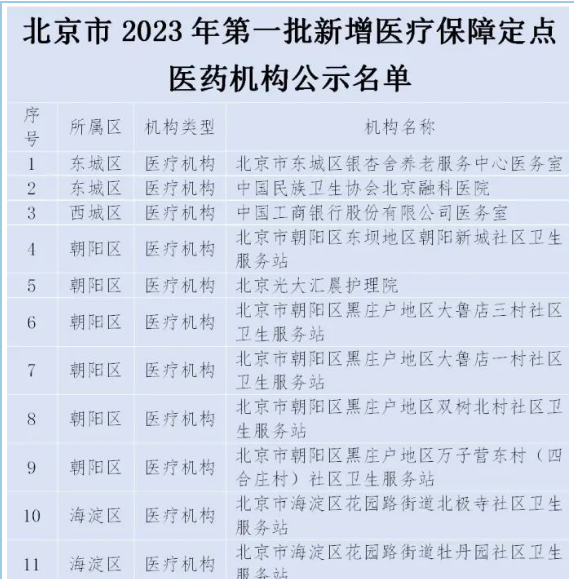 北京今年首批新增醫(yī)保定點(diǎn)機(jī)構(gòu),名單公示!含多家養(yǎng)老院醫(yī)務(wù)室