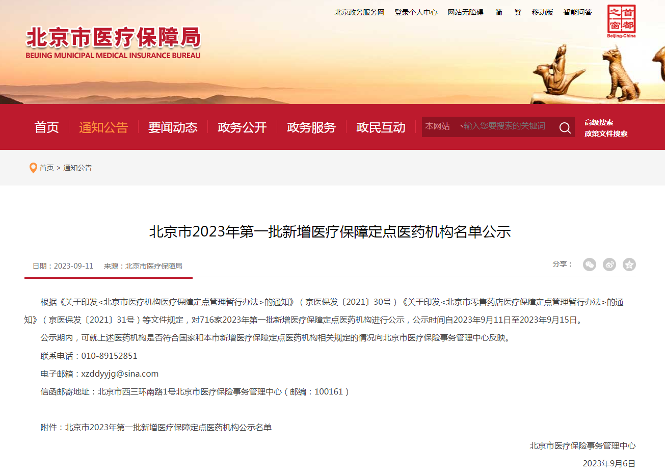 據(jù)北京市醫(yī)療保險(xiǎn)事務(wù)管理中心消息,根據(jù)《關(guān)于印發(fā)<北京市醫(yī)療機(jī)構(gòu)醫(yī)療保障定點(diǎn)管理暫行辦法>的通知》(京醫(yī)保發(fā)〔2021〕30號(hào))《關(guān)于印發(fā)<北京市零售藥店醫(yī)療保障定點(diǎn)管理暫行辦法>的通知》(京醫(yī)保發(fā)〔2021〕31號(hào))等文件規(guī)定,目前對(duì)716家2023年第一批新增醫(yī)療保障定點(diǎn)醫(yī)藥機(jī)構(gòu)進(jìn)行公示,公示時(shí)間自2023年9月11日至2023年9月15日。