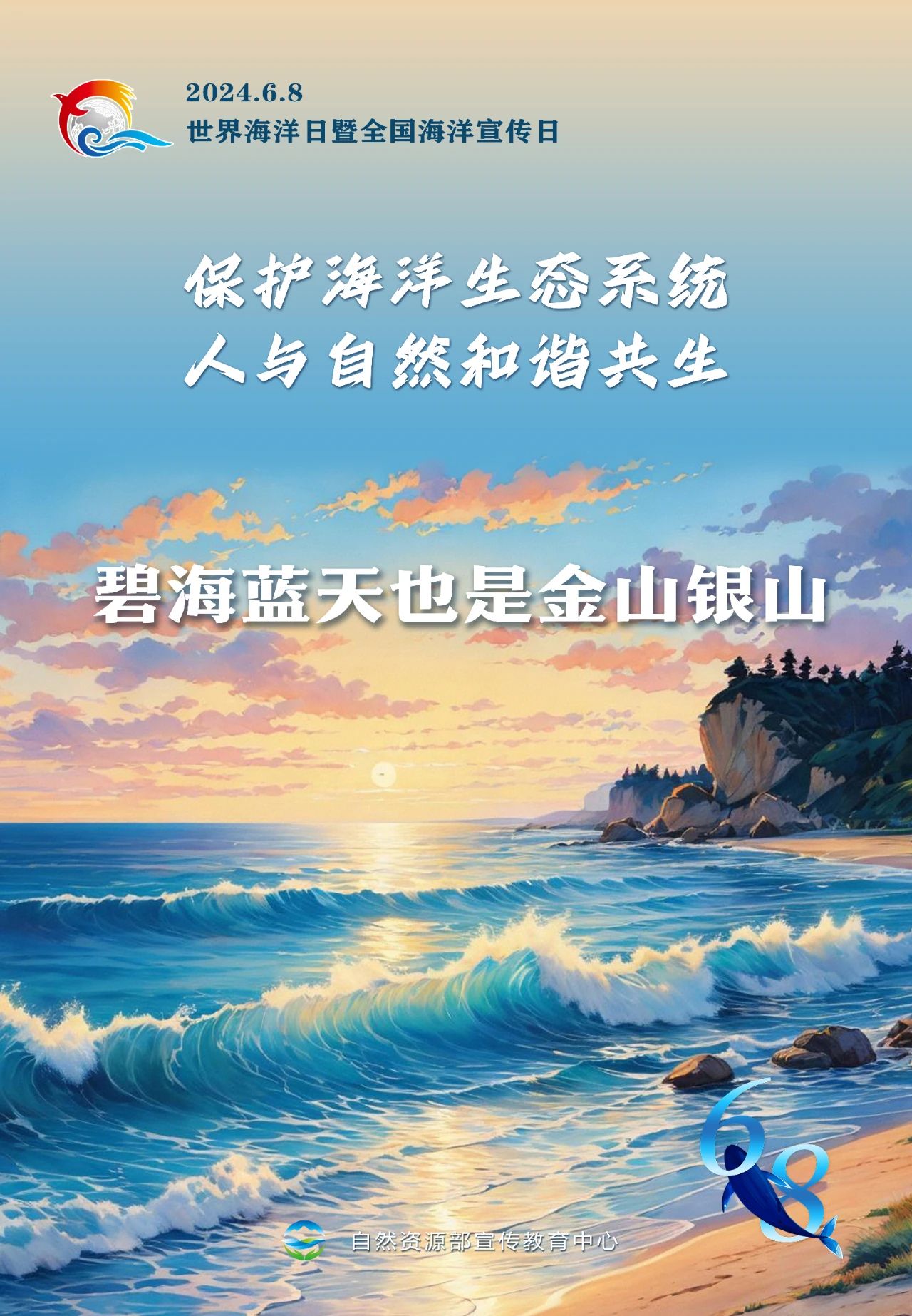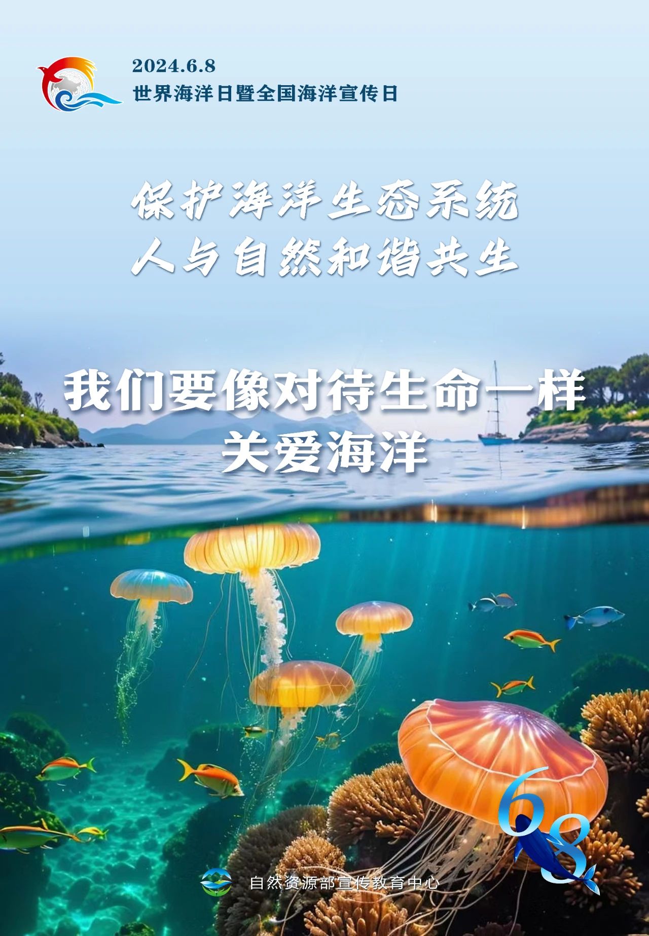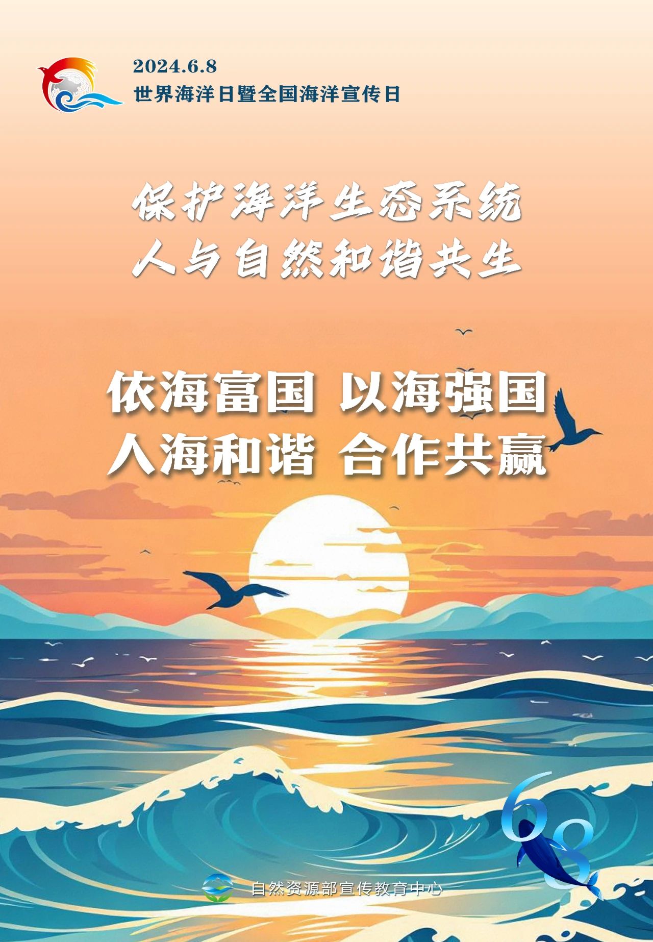2024年6月8日是第16個世界海洋日和第17個全國海洋宣傳日,活動主題是“保護(hù)海洋生態(tài)系統(tǒng)  人與自然和諧共生”。自然資源部宣傳教育中心策劃制作了宣傳海報,供各地下載傳播。