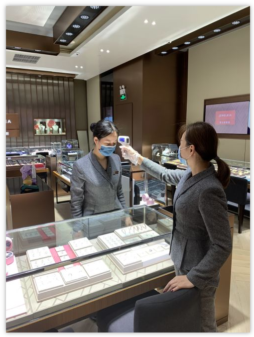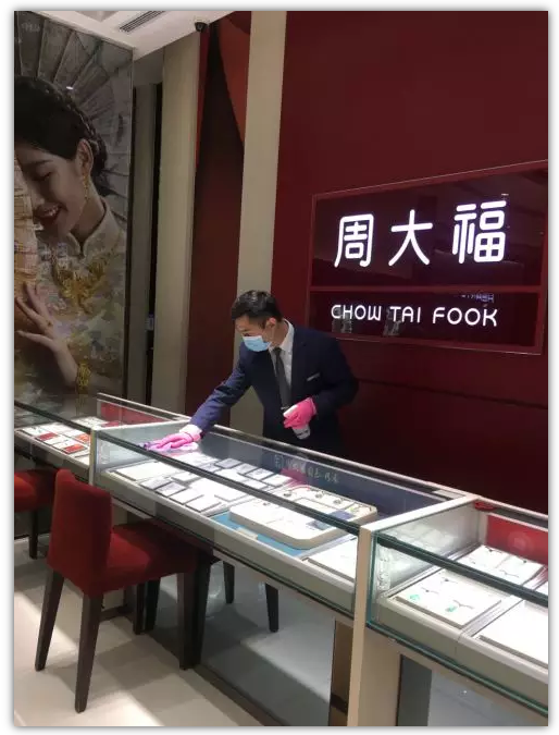 為做好疫情防控工作,周大福珠寶集團(tuán)要求全國(guó)門店?duì)I業(yè)前及營(yíng)業(yè)結(jié)束后,均使用84消毒稀釋液擦涂柜臺(tái)及地面;要求店內(nèi)員工在接待客人過程中必須佩戴口罩;同時(shí)要求店內(nèi)常備口罩、免洗洗手液等,供顧客及員工使用;并提醒員工在出現(xiàn)身體不適的情況下,應(yīng)及時(shí)到醫(yī)療機(jī)構(gòu)就醫(yī);疫情期間,全國(guó)受影響的地區(qū)分店,均配合當(dāng)?shù)卣蛏虉?chǎng)的要求停止對(duì)外營(yíng)業(yè)或縮短開業(yè)時(shí)間。