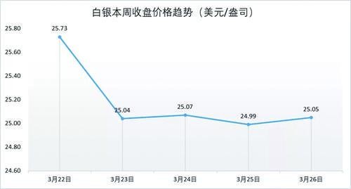 白銀一周收盤價格趨勢(美元/盎司)