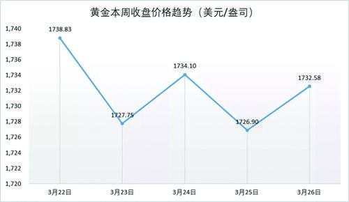 黃金一周收盤價格趨勢(美元/盎司)