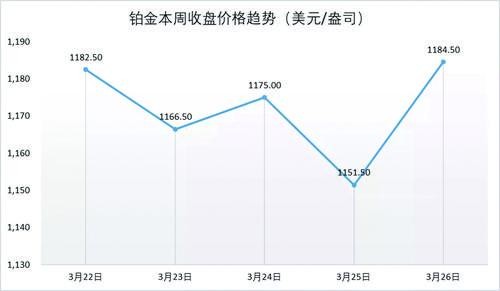 鉑金一周收盤價格趨勢(美元/盎司)