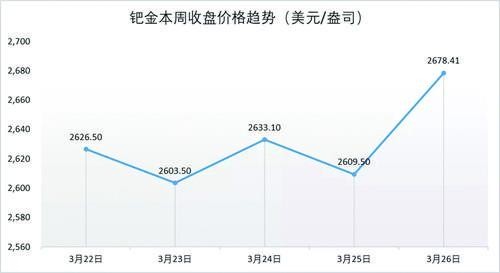 鈀金一周收盤價格趨勢(美元/盎司)