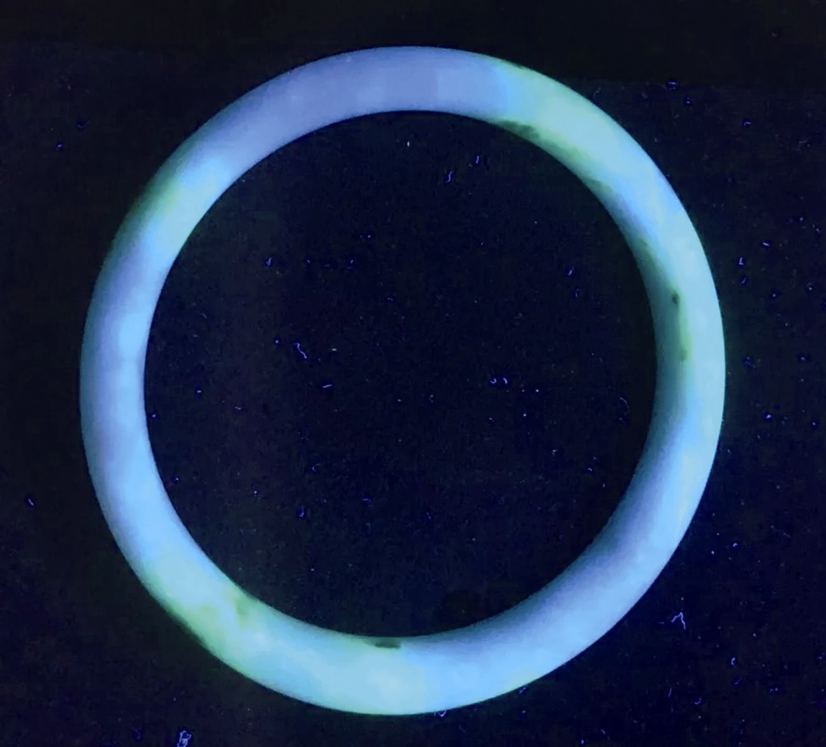 2.熒光觀察:紫外熒光燈是比較傳統(tǒng)的翡翠檢測工具。天然翡翠通常無紫外熒光,或者具有弱的白、綠、黃色熒光。經(jīng)過充填處理的翡翠多數(shù)具有中等或者強熒光,但是隨著作假技術(shù)的提高,近期處理翡翠熒光越來越弱,甚至無熒光現(xiàn)象。