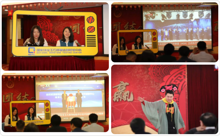 2020年1月17日下午,自然資源部珠寶玉石首飾管理中心(國(guó)家珠寶玉石質(zhì)量監(jiān)督檢驗(yàn)中心)(NGTC,以下簡(jiǎn)稱寶石中心)和中國(guó)珠寶玉石首飾行業(yè)協(xié)會(huì)(GAC,以下簡(jiǎn)稱中寶協(xié))共同舉辦2020年職工春節(jié)聯(lián)誼會(huì)。本次聯(lián)誼會(huì)以“團(tuán)結(jié)一心,共享共贏”為主題,寶石中心和中寶協(xié)秘書(shū)處領(lǐng)導(dǎo),寶石中心各處室(部門)、NGTC北京實(shí)驗(yàn)室、NGTC國(guó)檢珠寶培訓(xùn)中心、中寶協(xié)秘書(shū)處、中寶協(xié)展覽公司、《中國(guó)寶石》雜志社等在京單位200多名干部職工歡聚一堂,共同慶賀過(guò)去一年所取得的成績(jī),迎接2020新春佳節(jié)的到來(lái)。