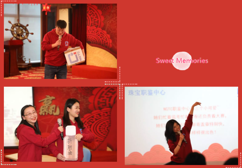 多個(gè)單位表演了反映珠寶行業(yè)或單位工作特色的原創(chuàng)節(jié)目,中心機(jī)關(guān)及NGTC北京實(shí)驗(yàn)室聯(lián)合創(chuàng)作的《新聞播報(bào):NGTC大事記》、中心機(jī)關(guān)創(chuàng)作的三句半《夸夸咱中心》、NGTC國(guó)檢珠寶培訓(xùn)中心創(chuàng)作的情景劇《培訓(xùn)中心的一天》等節(jié)目,從不同層面演繹2019年珠寶行業(yè)及單位的大事、工作成績(jī)及趣聞?shì)W事,節(jié)目生動(dòng)活潑、風(fēng)趣幽默,體現(xiàn)廣大職工對(duì)工作的熱愛(ài)和不斷創(chuàng)新的精神面貌。