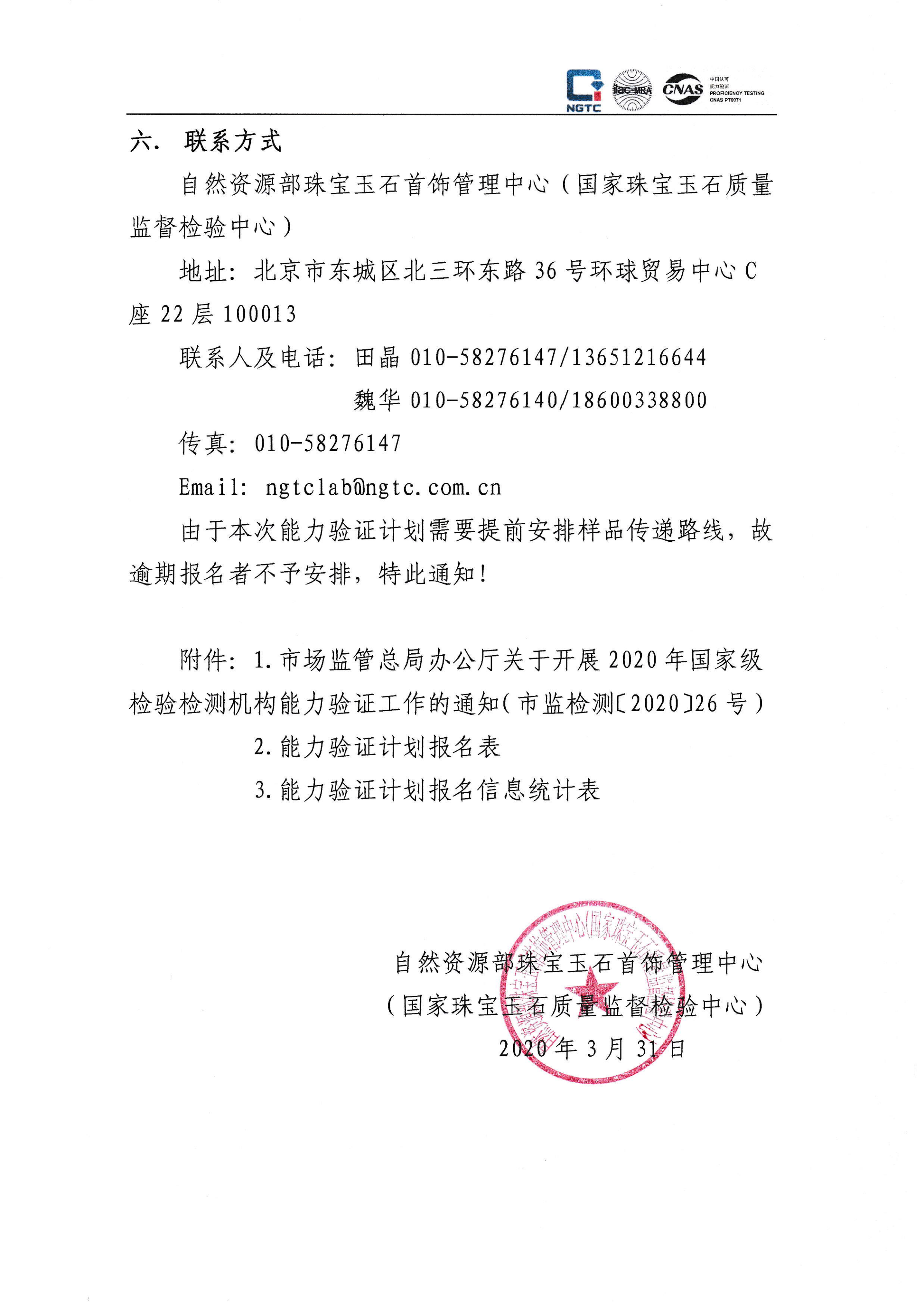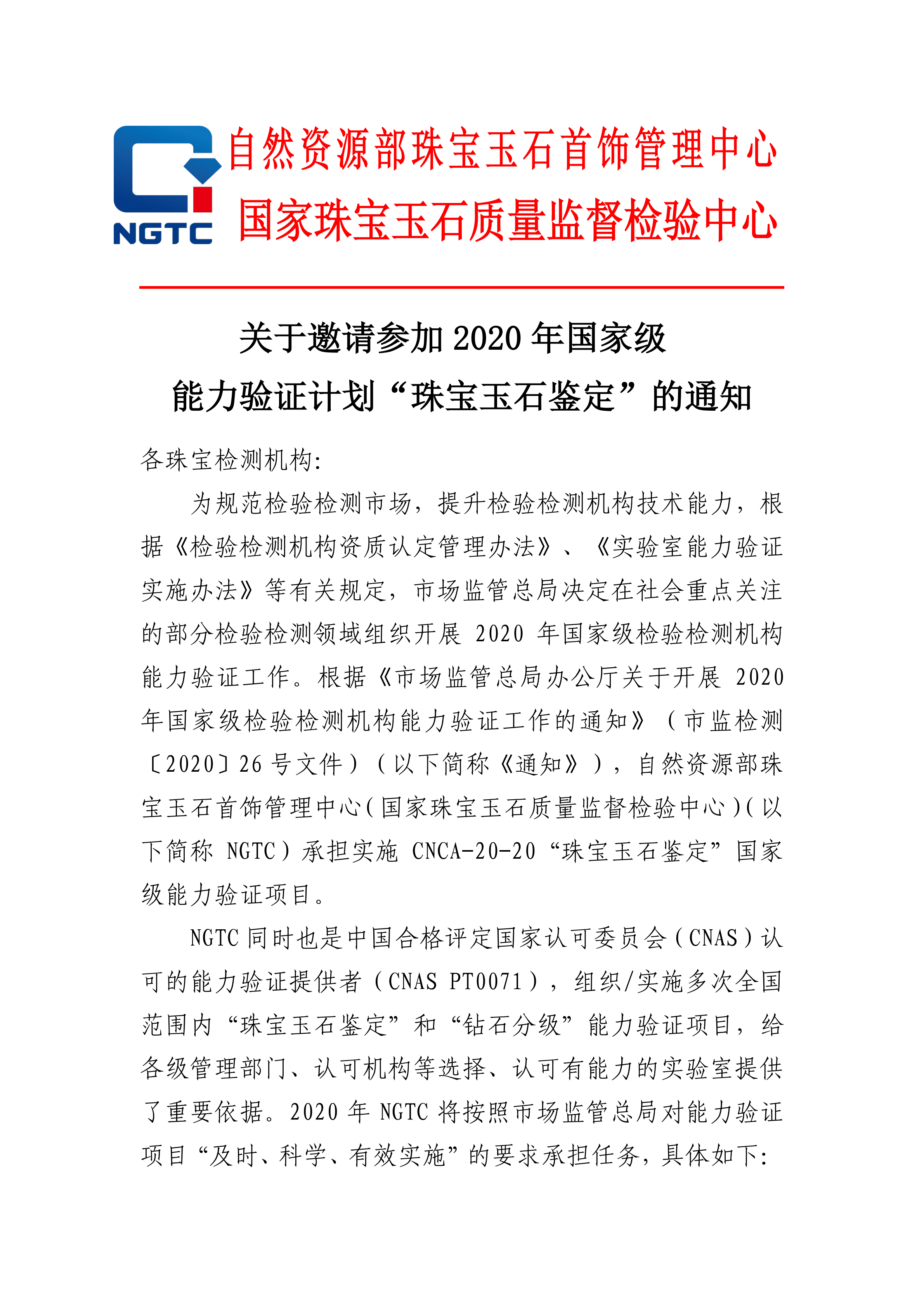 關于邀請參加2020年國家級能力驗證計劃“珠寶玉石鑒定”的通知