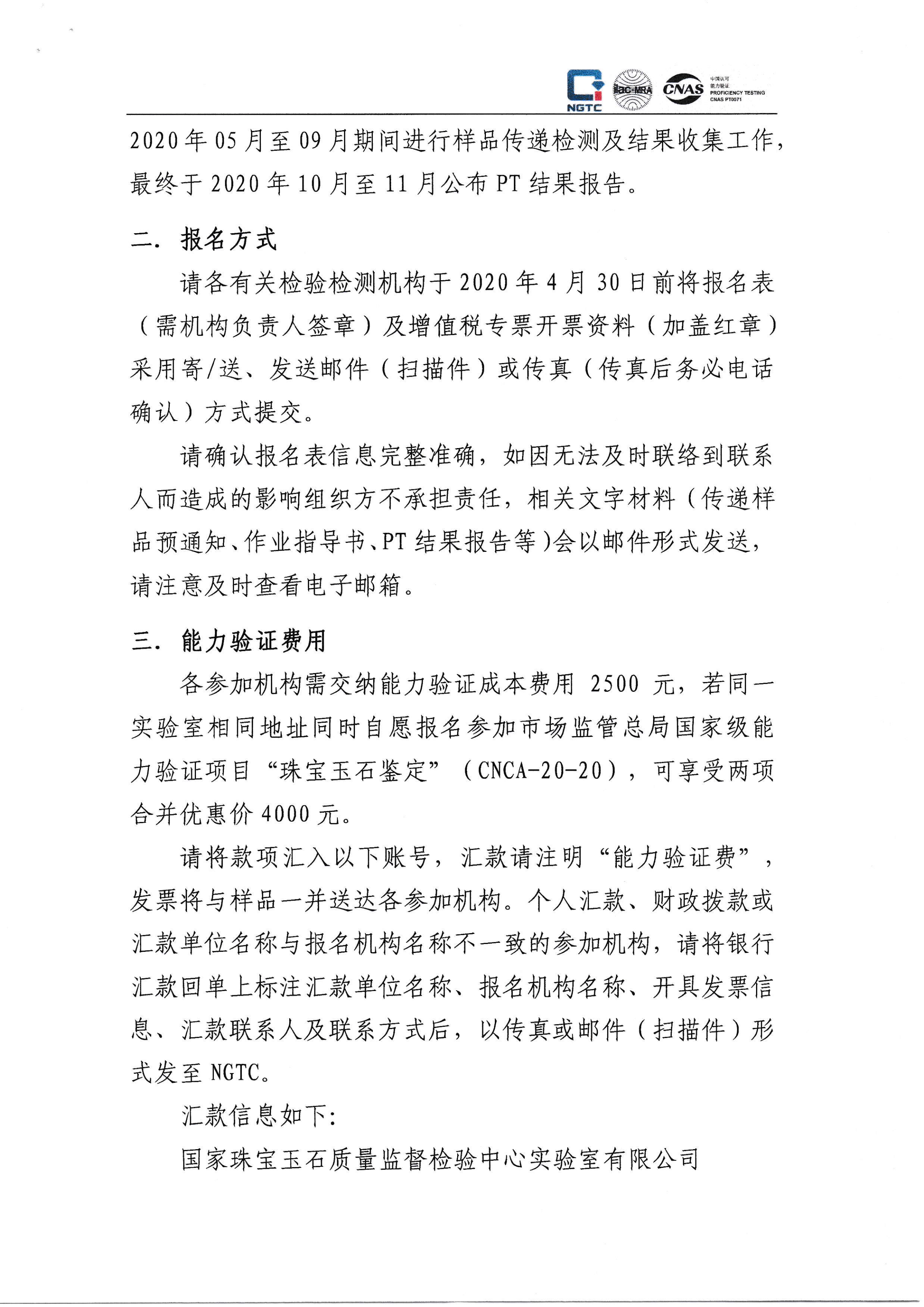 關(guān)于邀請(qǐng)參加 2020年 NGTC PT2020001“鑲嵌鉆石分級(jí)”能力驗(yàn)證計(jì)劃的通知