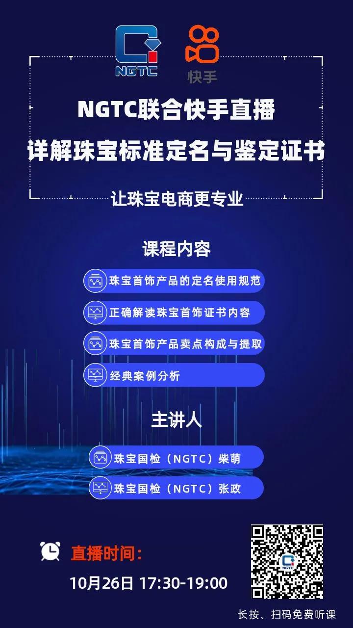 那就不能錯(cuò)過(guò)10月26日(下周一)17:30—19:00,珠寶國(guó)檢(NGTC)聯(lián)合快手開(kāi)展的主題網(wǎng)絡(luò)培訓(xùn)直播,詳解珠寶標(biāo)準(zhǔn)定名與鑒定證書(shū),讓珠寶電商更專(zhuān)業(yè)。屆時(shí)珠寶國(guó)檢(NGTC)國(guó)檢珠寶培訓(xùn)中心商學(xué)院院長(zhǎng)柴萌、珠寶國(guó)檢(NGTC)北京實(shí)驗(yàn)室張政將直擊珠寶直播賣(mài)貨痛點(diǎn),教你如何“反套路真營(yíng)銷(xiāo)”!