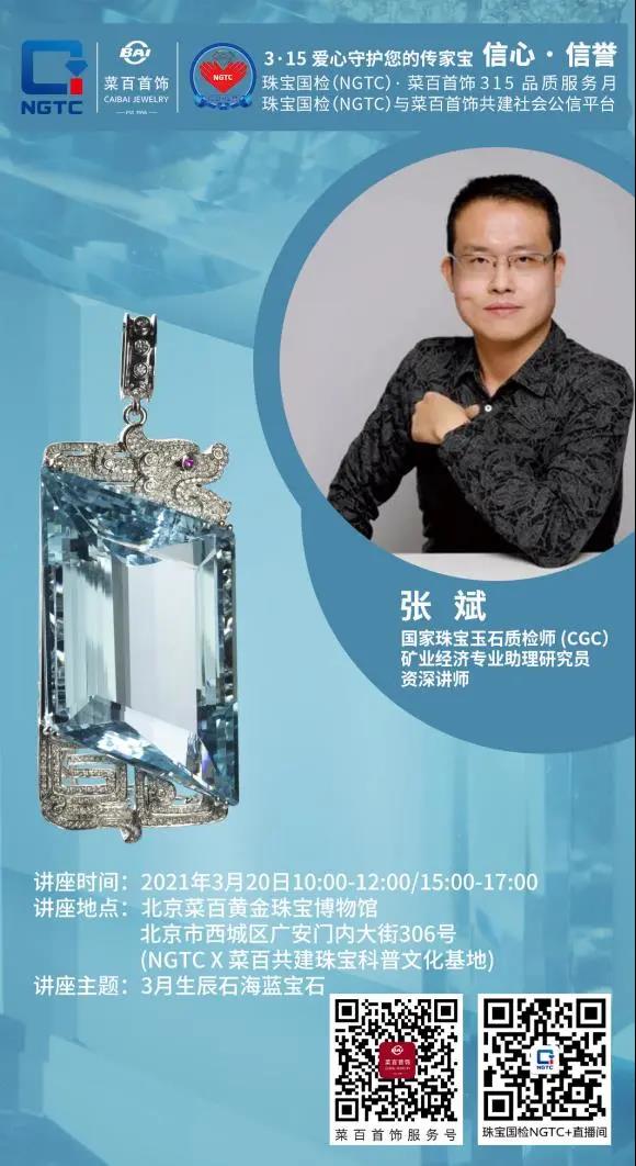 珠寶國(guó)檢(NGTC)與菜百共建社會(huì)公信平臺(tái)專為少兒科普開(kāi)辟的“珠寶國(guó)檢(NGTC)與菜百科普文化基地”,將在2021年3月20日,春分節(jié)氣,迎著明媚的春光,與北京的小朋友們相約菜百。NGTC國(guó)檢珠寶培訓(xùn)中心資深講師、商學(xué)院副院長(zhǎng)張斌在菜百總店將以珠寶國(guó)檢(NGTC)權(quán)威的科研、檢測(cè)、教育成果為基礎(chǔ),為近百位北京師生家長(zhǎng)帶來(lái)寶石礦物學(xué)科普講座——3月生辰石·海藍(lán)寶石。精彩內(nèi)容涵蓋如下: