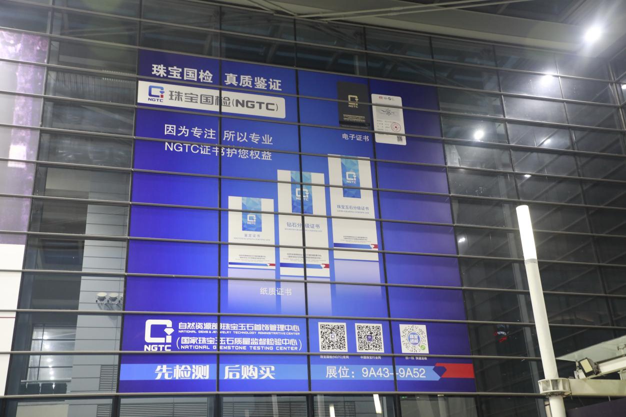 走進2021深圳國際珠寶展覽會(下簡稱深圳展)展場,9號館北門上方的珠寶國檢(NGTC)大幅形象廣告與館內(nèi)重要位置懸掛的巨幅吊旗廣告分外引人注目。形象廣告上明亮醒目的藍色被人們親切地稱呼為“國檢藍”,正是這一抹亮麗的“國檢藍”時刻提醒廣大參展商、采購商、參觀者“先檢測,再購買”,用權(quán)威的第三方質(zhì)量檢測服務(wù)保障自己的合法權(quán)益。