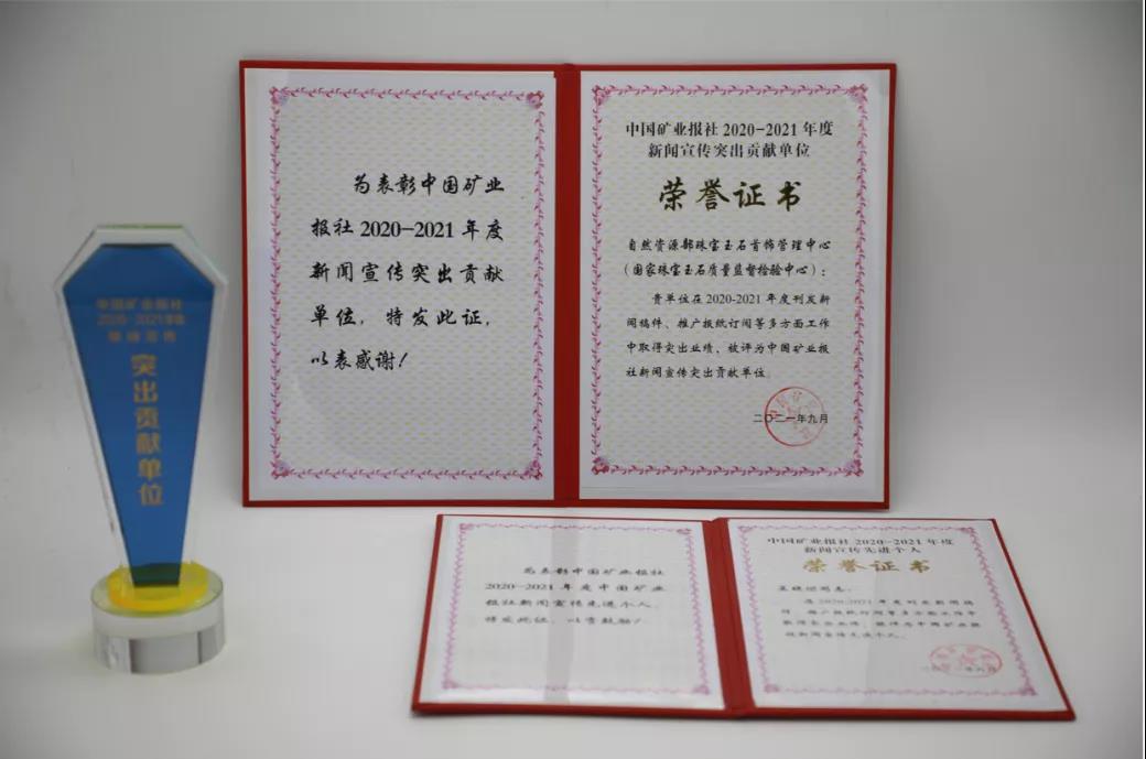 珠寶國(guó)檢(NGTC)榮獲中國(guó)礦業(yè)報(bào)社2020-2021年度新聞宣傳突出貢獻(xiàn)單位稱號(hào)