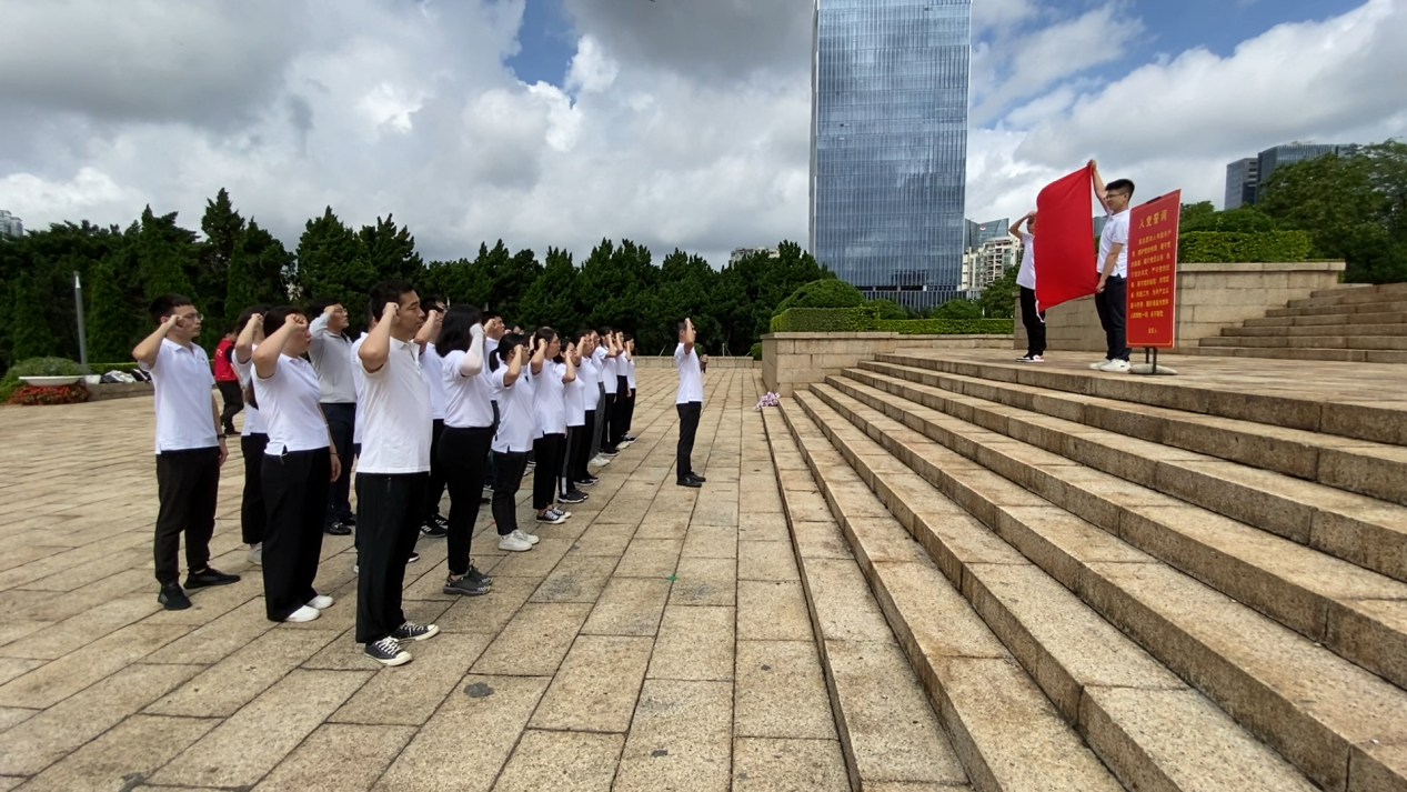 活動當天,大家首先瞻仰了深圳革命烈士紀念碑,碑身四面鐫刻著“革命烈士永垂不朽”八個大字,由當年東江縱隊司令員曾生同志書寫,烈士紀念碑碑座的北面浮雕是銅鑄碑文;西面浮雕反映抗日戰(zhàn)爭的壯烈場面;東面浮雕反映中國共產(chǎn)黨營救淪陷在香港的進步愛國人士和國際友人的斗爭場面;南面浮雕反映解放戰(zhàn)爭的場景,莊嚴肅穆。之后,全體人員在革命烈士紀念碑前肅立默哀并三鞠躬,敬獻白菊花,向長眠于此的革命先烈表達深切的哀悼,致以崇高的敬意。最后,在黨支部書記崔向超同志的帶領(lǐng)下,同志們面向鮮紅的黨旗,重溫入黨誓詞。鏗鏘有力、擲地有聲的80字入黨誓詞,時刻提醒著同志們牢記入黨初心,恪守入黨承諾,踐行黨的宗旨,始終堅定為中國特色社會主義偉大事業(yè)奮斗終身的決心。