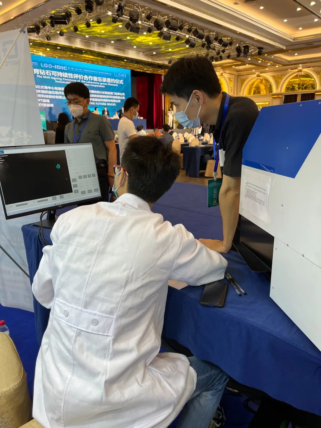 珠寶國檢集團廣州公司珠寶鑒定師為與會嘉賓詳細介紹了珠寶國檢集團自主研發(fā)的鉆石首飾觀察鑒定儀DDO 3210N,并提供檢測咨詢、現場答疑服務。