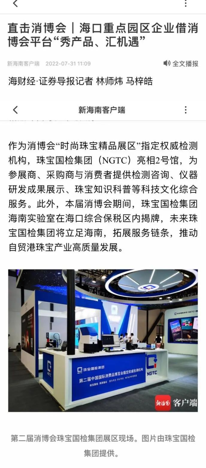 第二屆中國(guó)國(guó)際消費(fèi)品博覽會(huì)媒體集中報(bào)道,為珠寶國(guó)檢集團(tuán)科技服務(wù)點(diǎn)贊