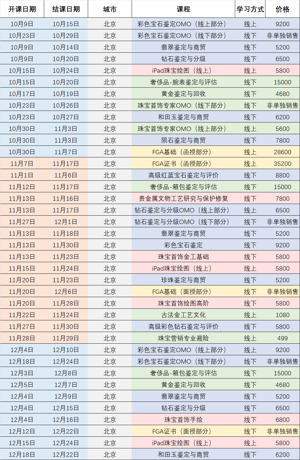 珠寶國檢集團(tuán)培訓(xùn)中心全國課程 最新計劃 || 2023年10-12月全國課程計劃