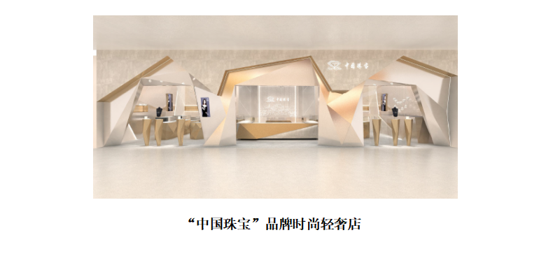 “中國珠寶”品牌時(shí)尚輕奢店亮相直播間,基于品牌核心鉆石型logo元素提煉出“晶鉆之境·意蘊(yùn)閃耀”的設(shè)計(jì)概念,針對現(xiàn)在年輕人比較喜歡的大型購物廣場和商業(yè)綜合體等場景,打造簡約、時(shí)尚的店面風(fēng)格。