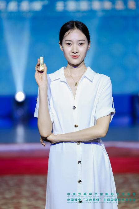 在本場(chǎng)活動(dòng)的高潮階段,模特們佩戴著《只此青綠·閃耀芳華》主題國(guó)潮新品閃亮登場(chǎng),開(kāi)啟一場(chǎng)別開(kāi)生面的模特秀,展示了“只此青綠”中華美學(xué)珠寶的獨(dú)特魅力和時(shí)尚風(fēng)范。其中,“只此青綠”主題系列新品——“口紅小金條”用口紅外形創(chuàng)意技驚四座,用文化內(nèi)涵表達(dá)中華美學(xué)的神韻,獲得了在場(chǎng)嘉賓的一致喜愛(ài)。中國(guó)珠寶“只此青綠·閃耀芳華”主題國(guó)潮新品承襲宋代簡(jiǎn)約凝練的美學(xué)風(fēng)格,以文化創(chuàng)新點(diǎn)亮現(xiàn)代生活,向世界講好中國(guó)故事,開(kāi)啟一場(chǎng)中國(guó)東方美學(xué)和青綠文化的時(shí)尚新熱潮。