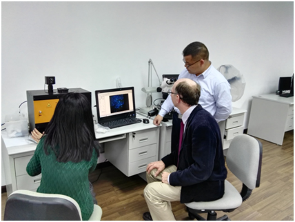 國家珠寶玉石質(zhì)量監(jiān)督檢驗(yàn)中心(NGTC)副總工、NTGC深圳珠寶研究所所長蘭延(右)的陪同澳大利亞Gemetrix有限公司鉆石專家John Chapman(左)在參觀NGTC深圳實(shí)驗(yàn)室