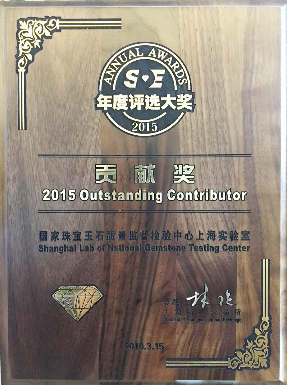 國家珠寶玉石質(zhì)量監(jiān)督檢驗中心上海實驗室 榮獲上海鉆石交易所2015年度貢獻(xiàn)獎
